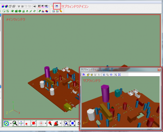 メインの3D画面で拡大しながらサブウィンドウで全体の配置を確認することができます。