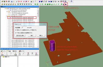 2.3D画面か部品リストから干渉チェックを行いたい部品を選択します。