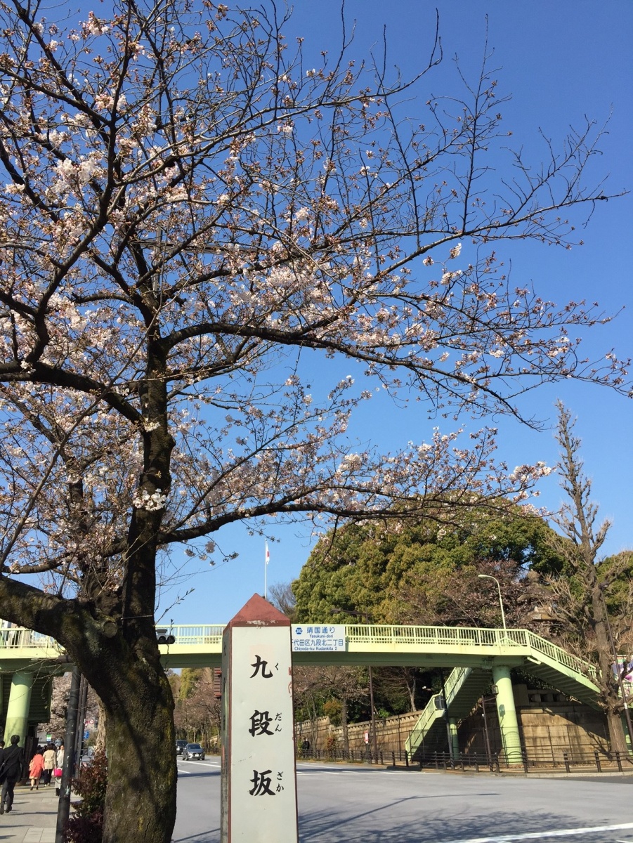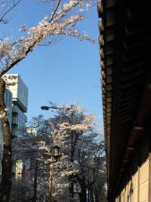 市ヶ谷駅からにぎやかな靖国通りを進んでいくと両側にきれいな桜並木を見ることができます。