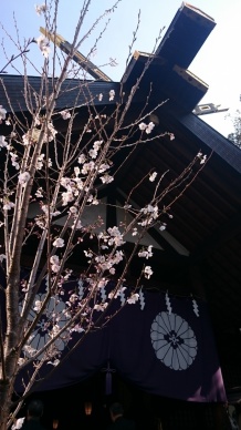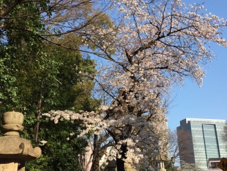 早稲田通りを進み東京大神宮までやってきました。こちらの境内では可愛らしい枝ぶりの桜が見られます。