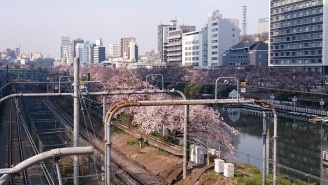 JR飯田橋駅まで歩いてくると牛込橋から外濠沿いの桜を望めます。