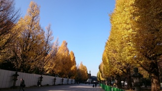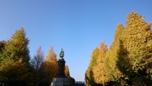 大村益次郎の像までやってきました。まだまだイチョウ並木が先まで続きます。