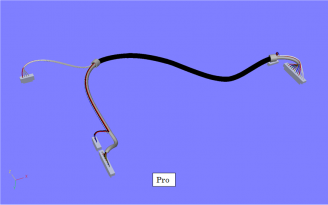 また、下図のように結束バンドや保護チューブなどの補材・保護材の配置、シースの剥き表現などが定義可能です。Basicでは通り道のみを定義しましたが、Proでは配線設計で必要なもの全てを定義できます。