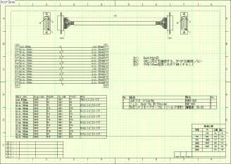 3D配線モデルを設計すれば、エンタープライズレイアウト(別製品、以下EPL)を併用することで、下図のようなケーブルの製造発注するための2D図面(ケーブル製造図面と言っています。)を自動的に生成することができます。
