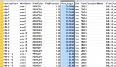 Electricalで設計したハーネスの配線結果を、長さ情報のあるFromTo情報として出力することができます。出力したFromTo情報を、ハーネスベンダーへ提出する図面情報や、ハーネスの重量計算やコスト計算に利用できます。